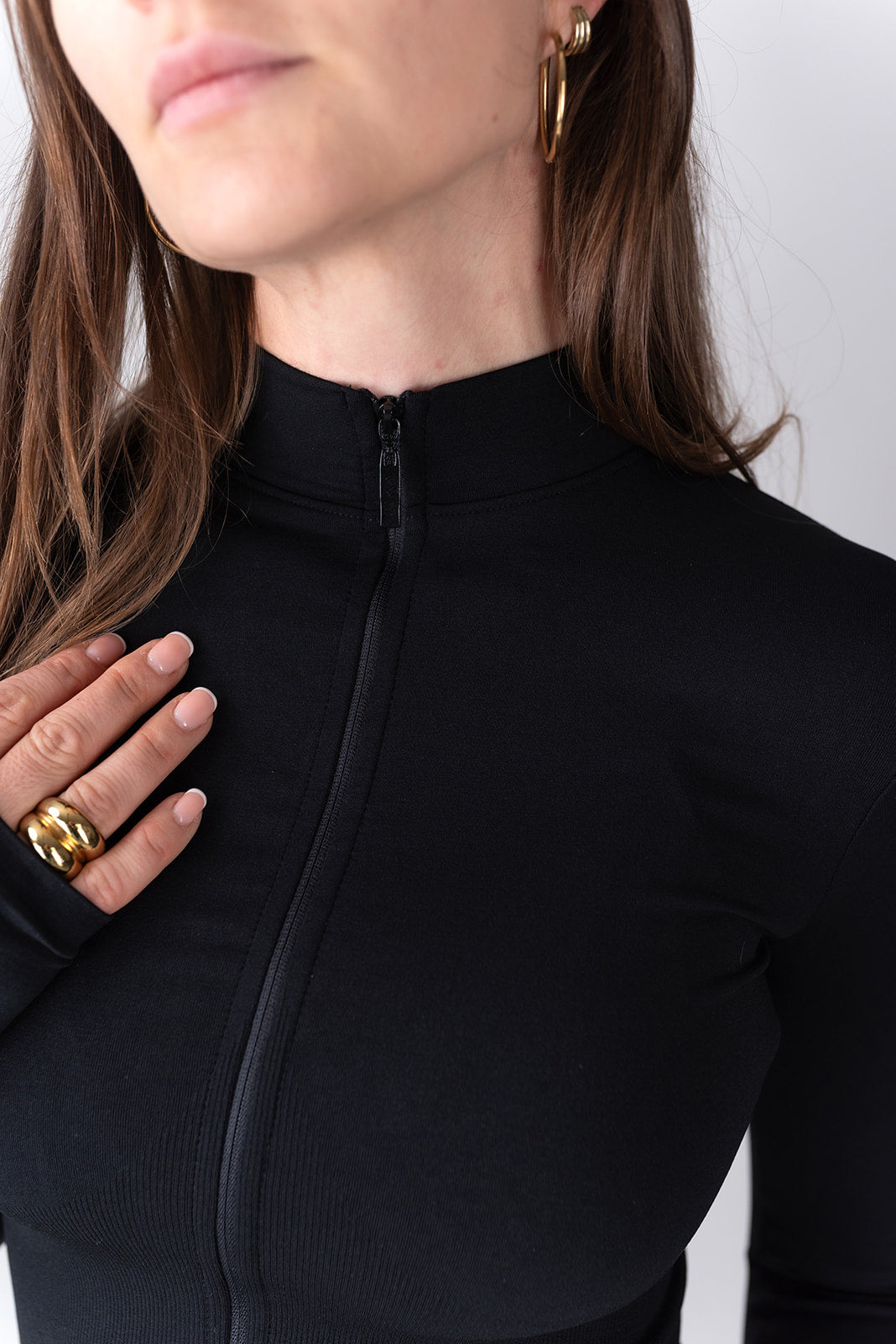Swy Brand Statement Long Slevee v črni barvi, detajl zadrga
