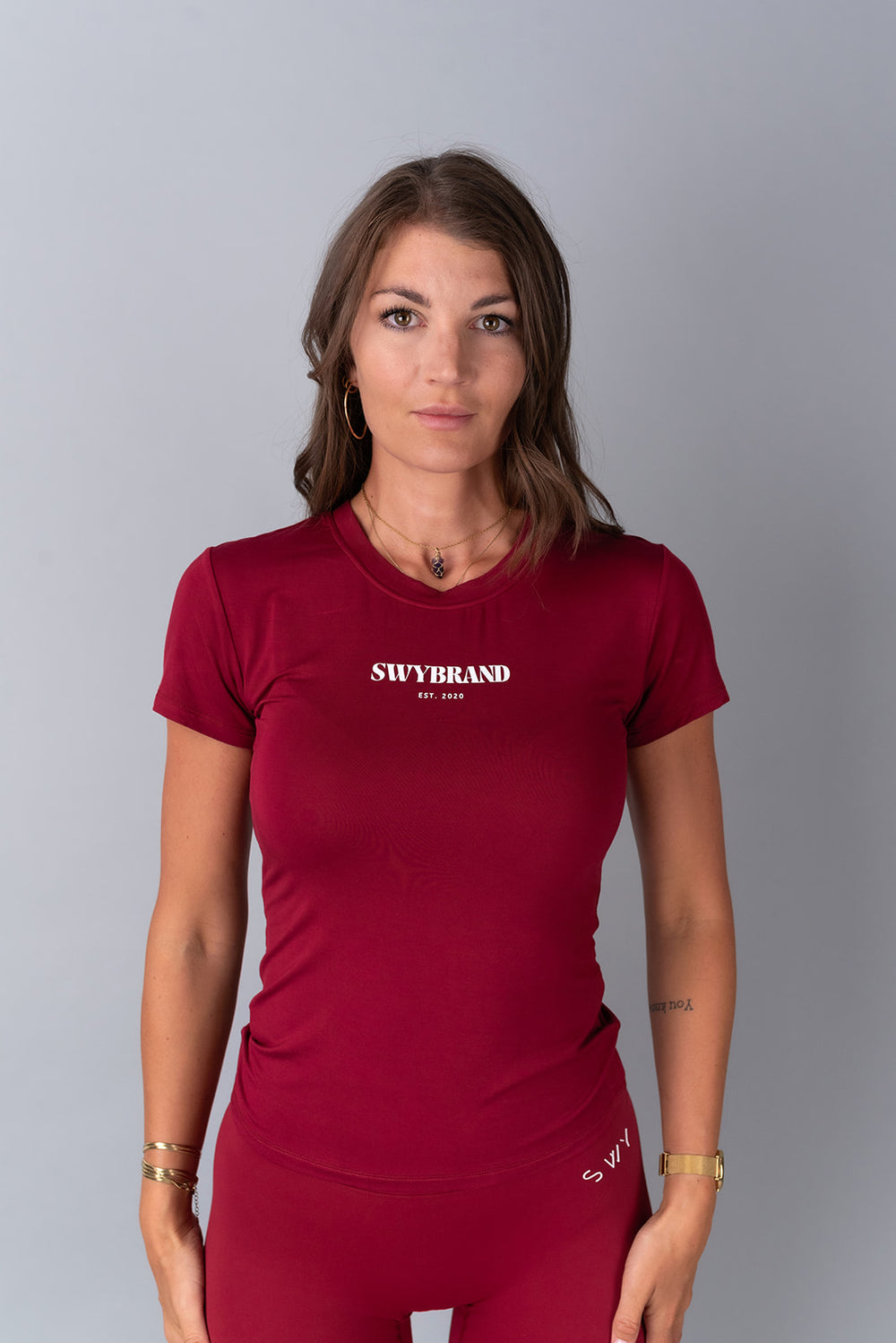 The bottom edge of the shirt is round and slightly extended in the front and back.